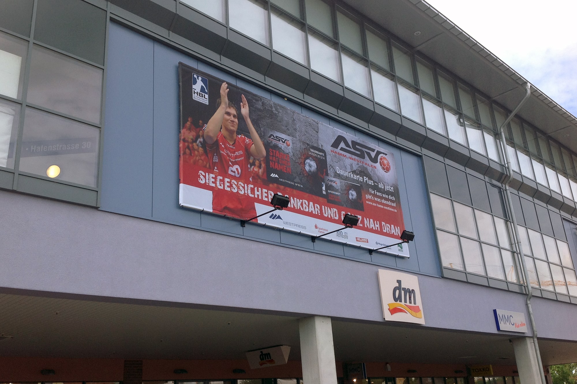 Outdoor Wandrahmen mit Werbebanner und Beleuchtung